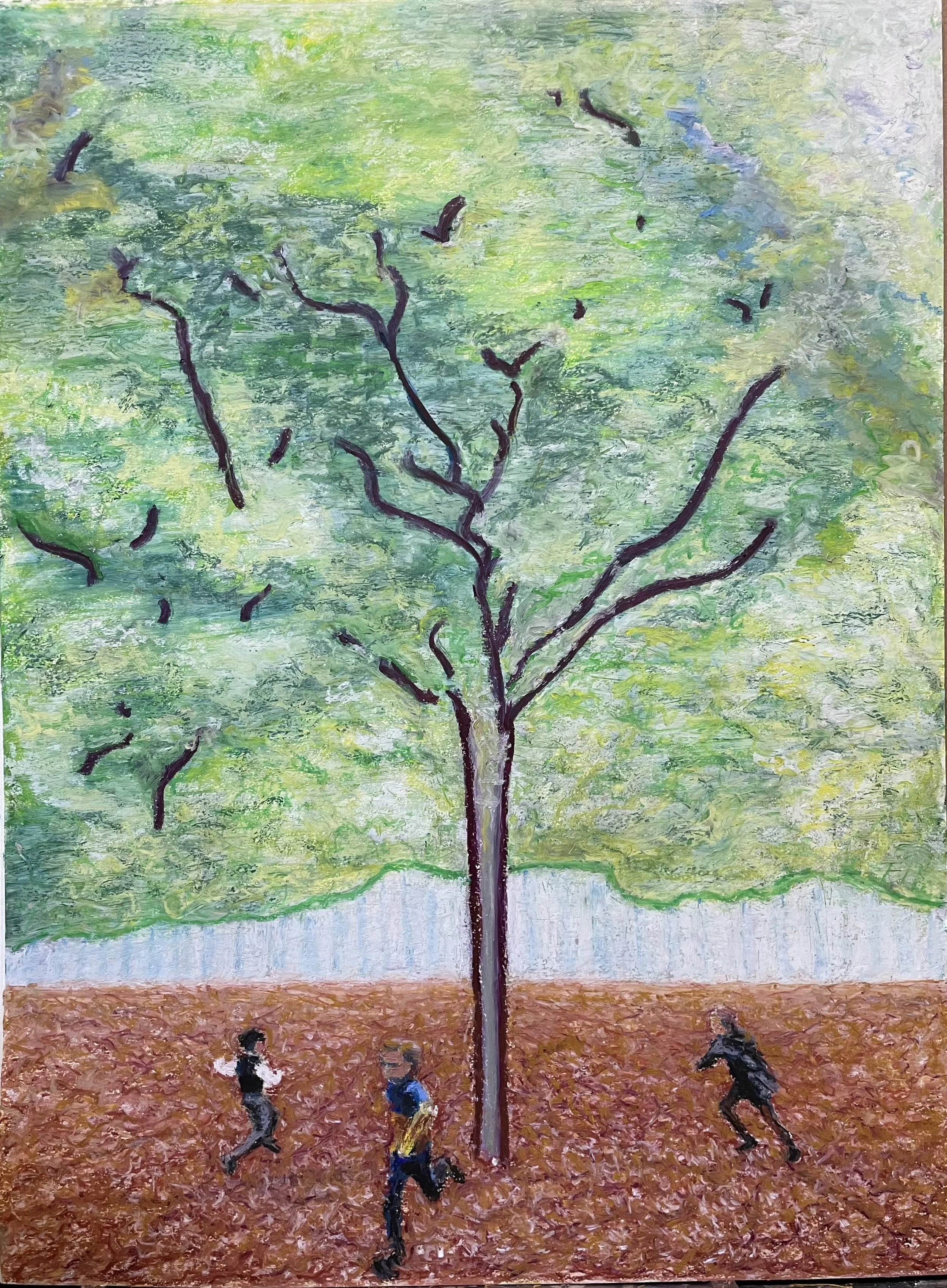 Chillden at Play in Jardin de Luxembourg (oil pastel, 24x18 in)