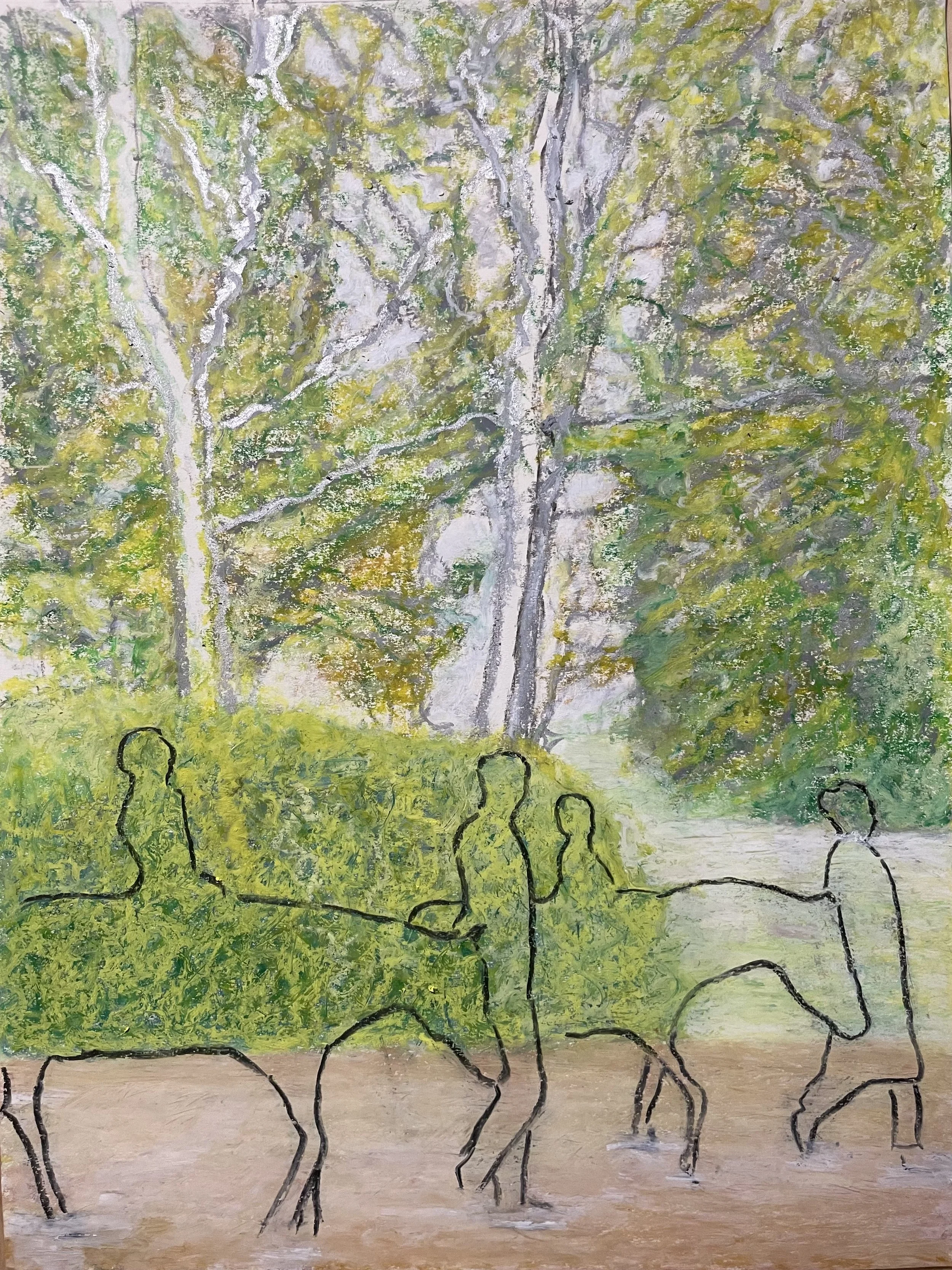 Pony riding in Jardin de Luxembourg (oil pastel, 24x18 in)